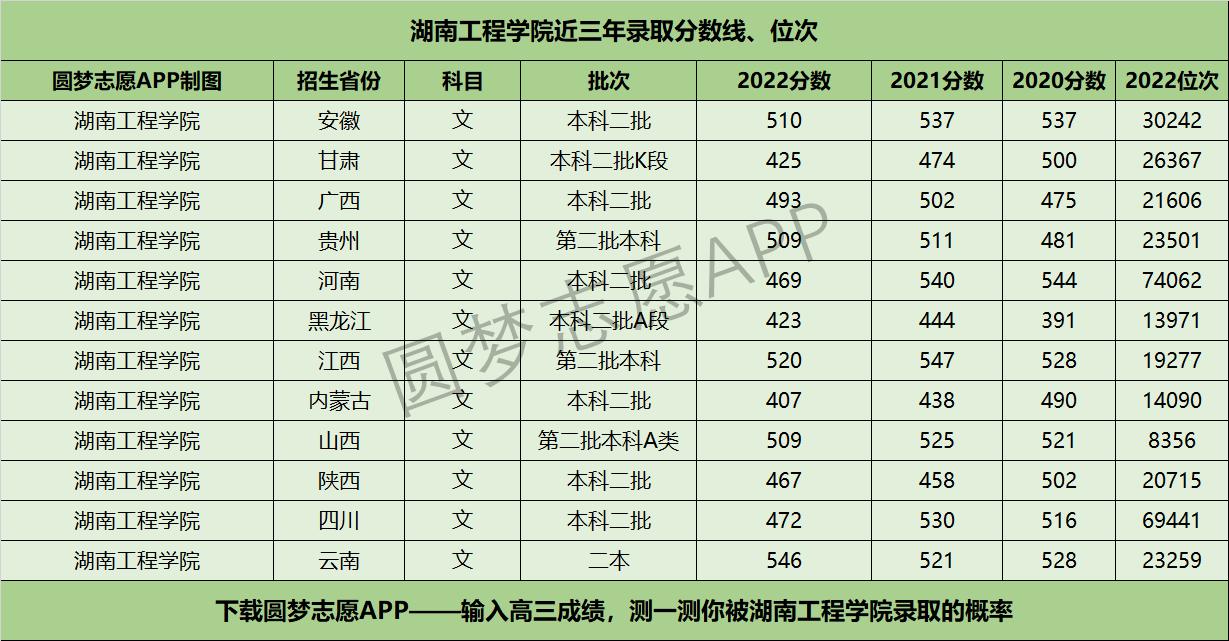 二、湖南工程学院近三年录取分数线及位次【文科版】