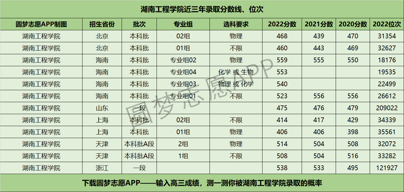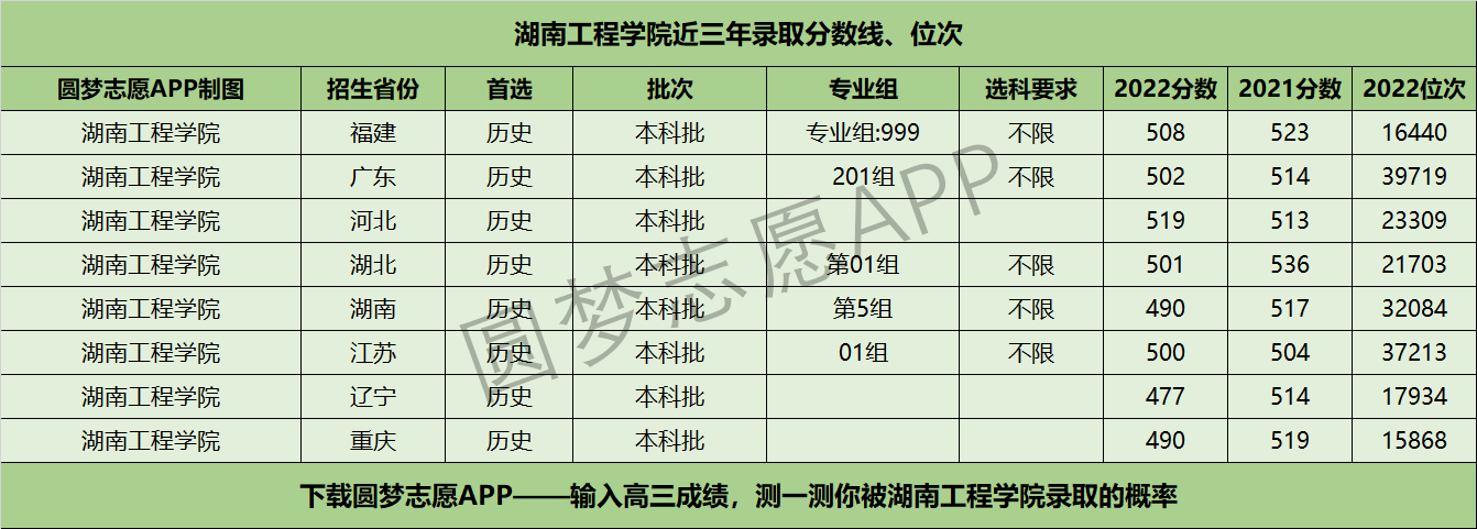 四、湖南工程学院近年录取分数线及位次【首选历史版】
