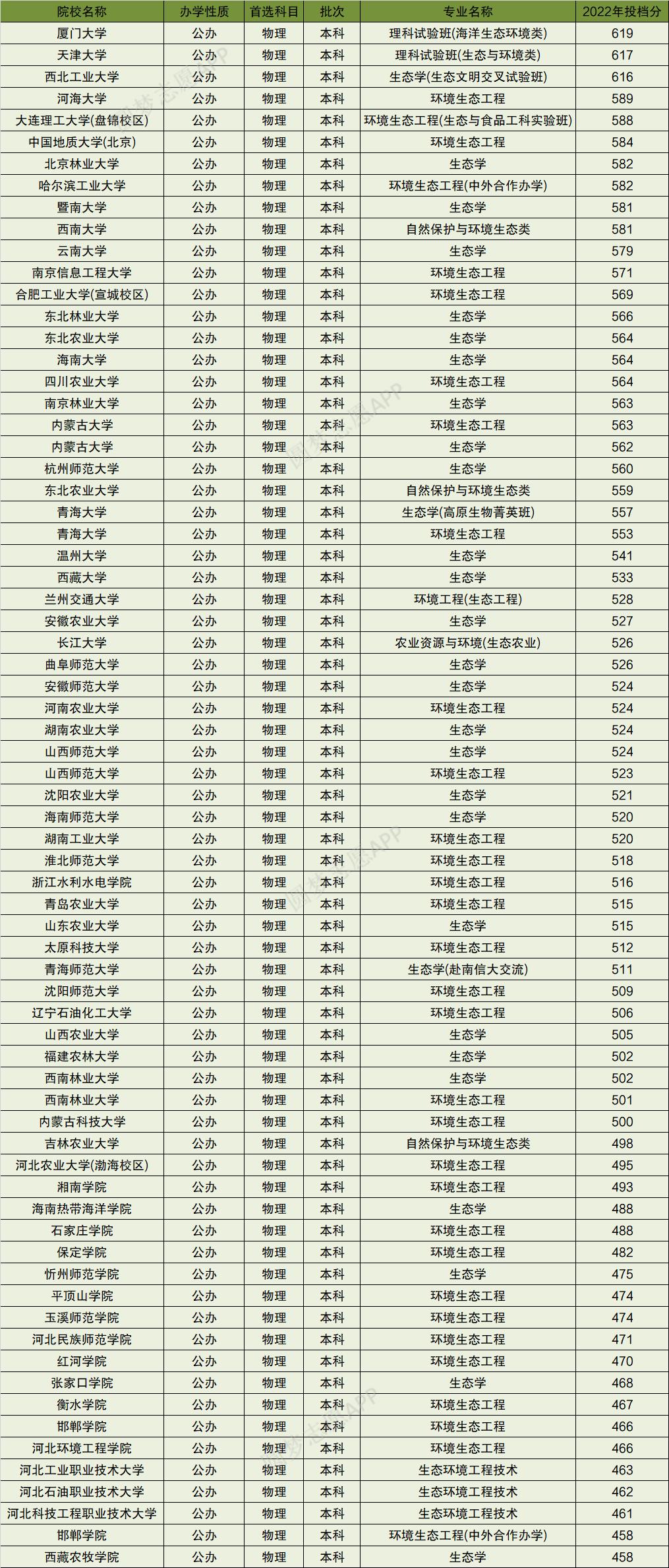 生态学专业录取分数线最低的5所大学分别为:河北工业职业技术大学、河北石油职业技术大学、河北科技工程职业技术大学、邯郸学院、西藏农牧学院。