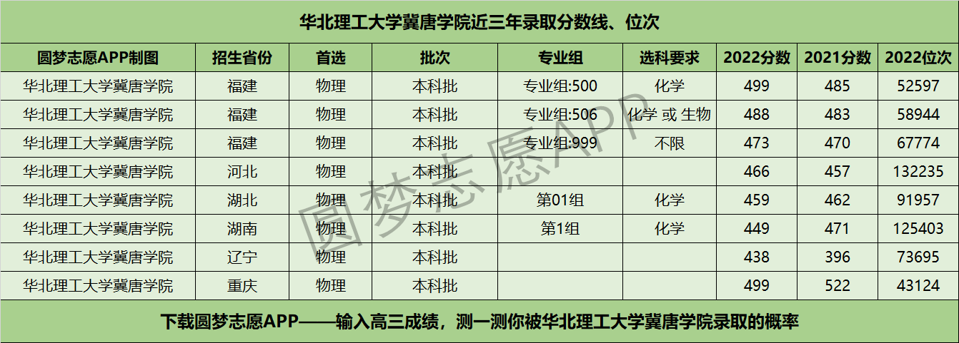 三、华北理工大学冀唐学院近年录取分数线及位次【首选物理版】