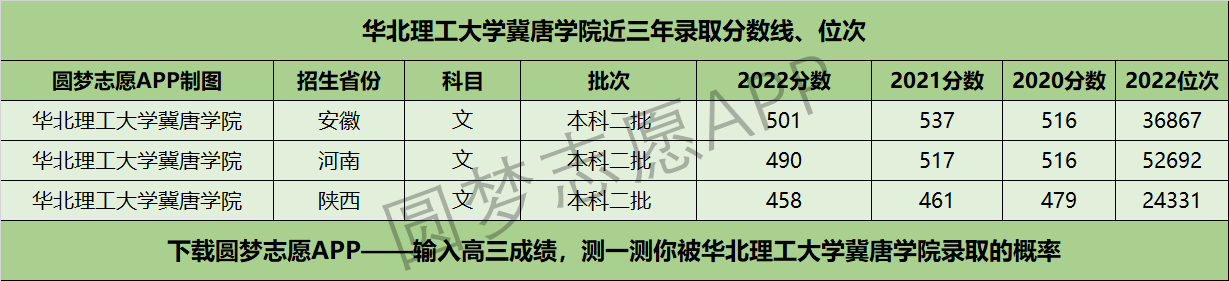 二、华北理工大学冀唐学院近三年录取分数线及位次【文科版】