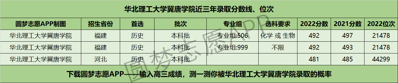 四、华北理工大学冀唐学院近年录取分数线及位次【首选历史版】
