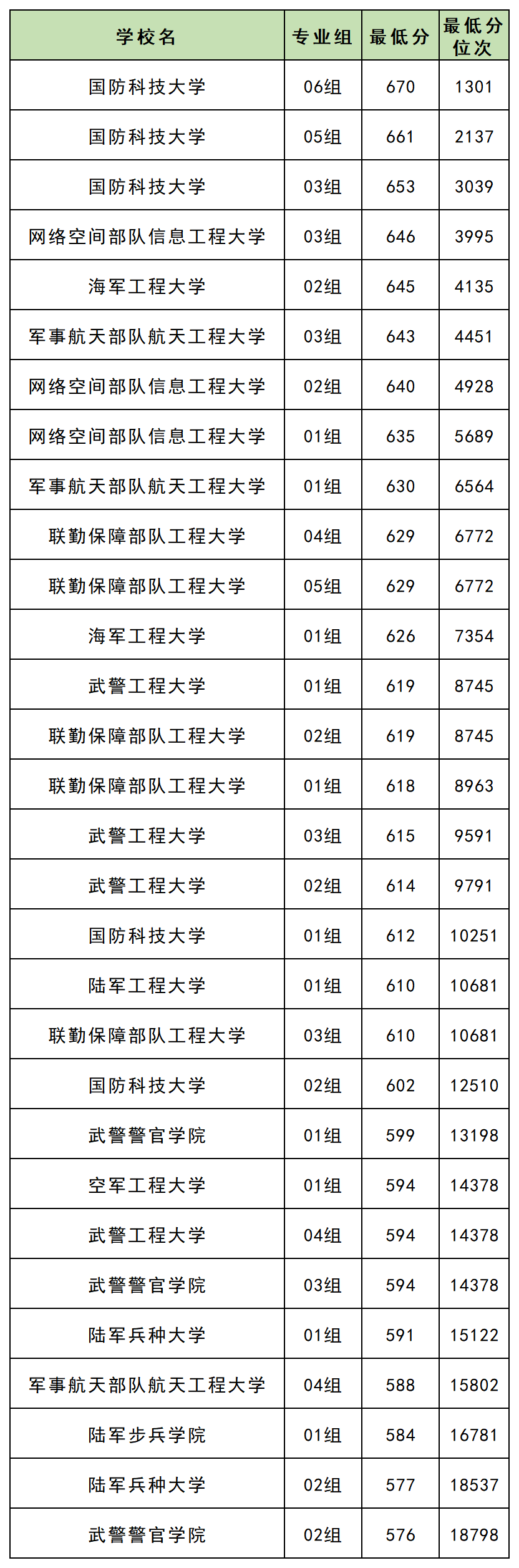 军事航天部队航天工程大学:04组,2025年最低588分。