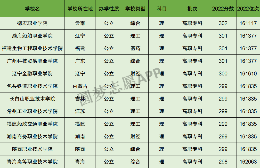 一、云南300分左右的公办专科大学理科