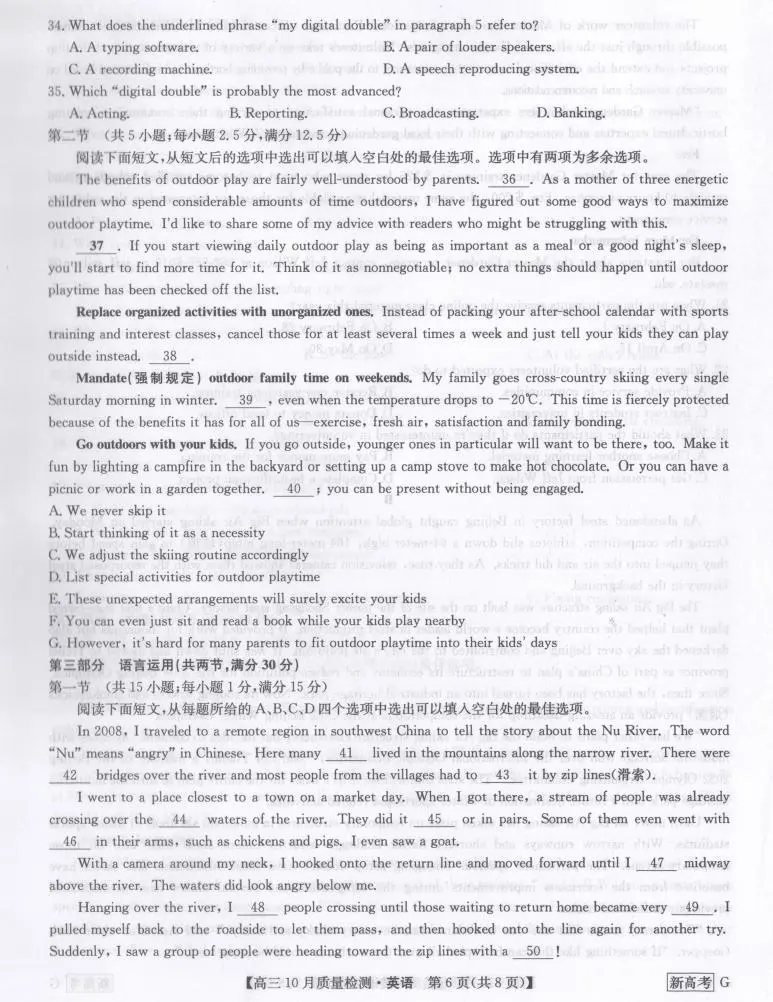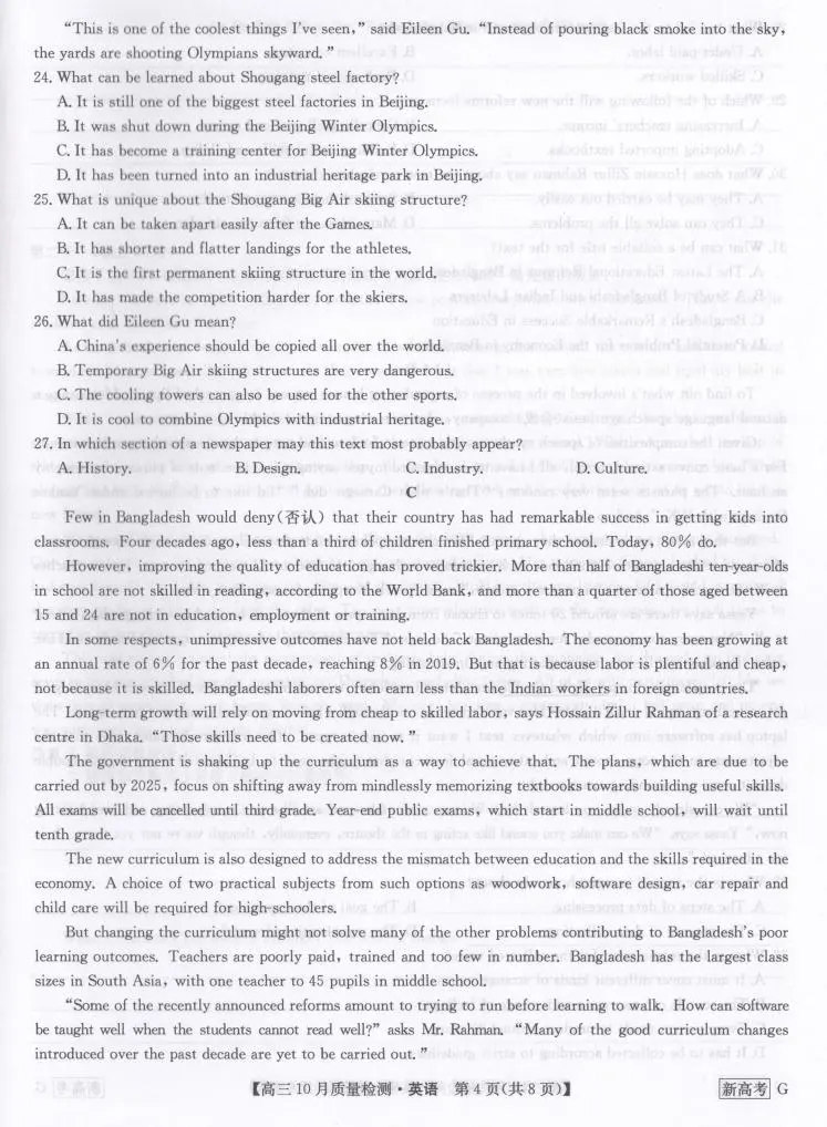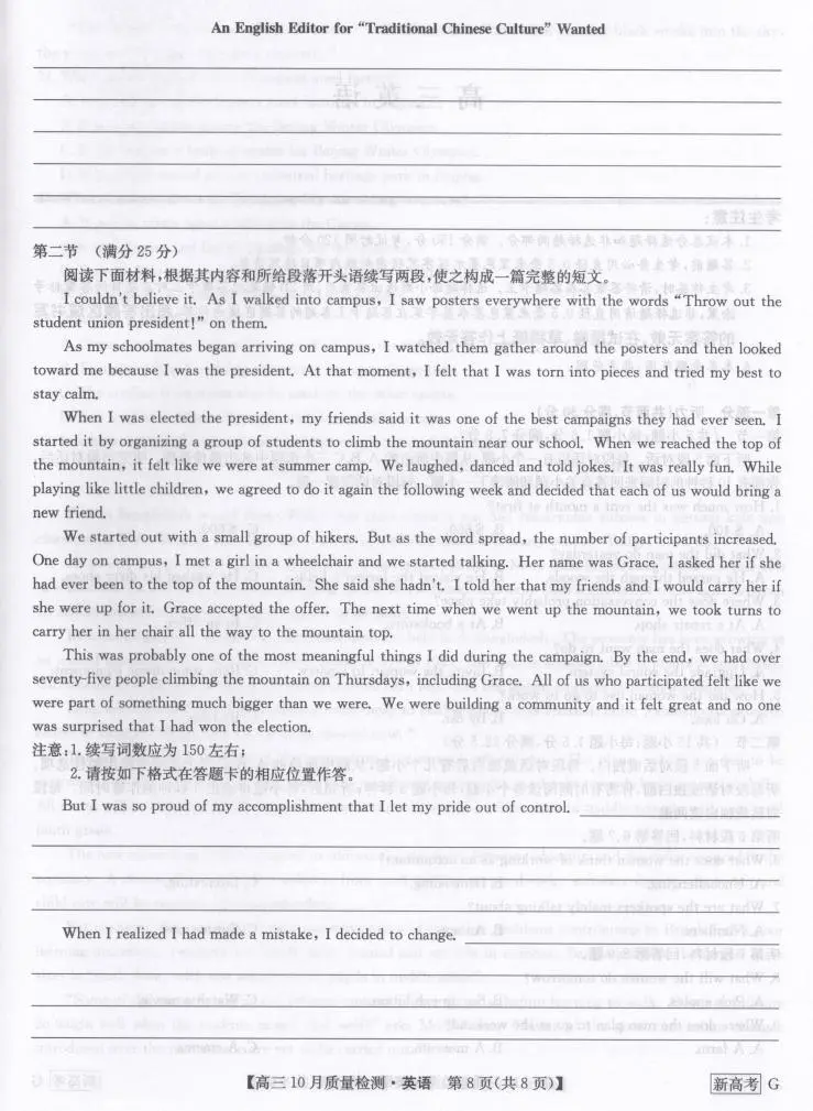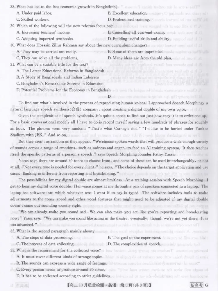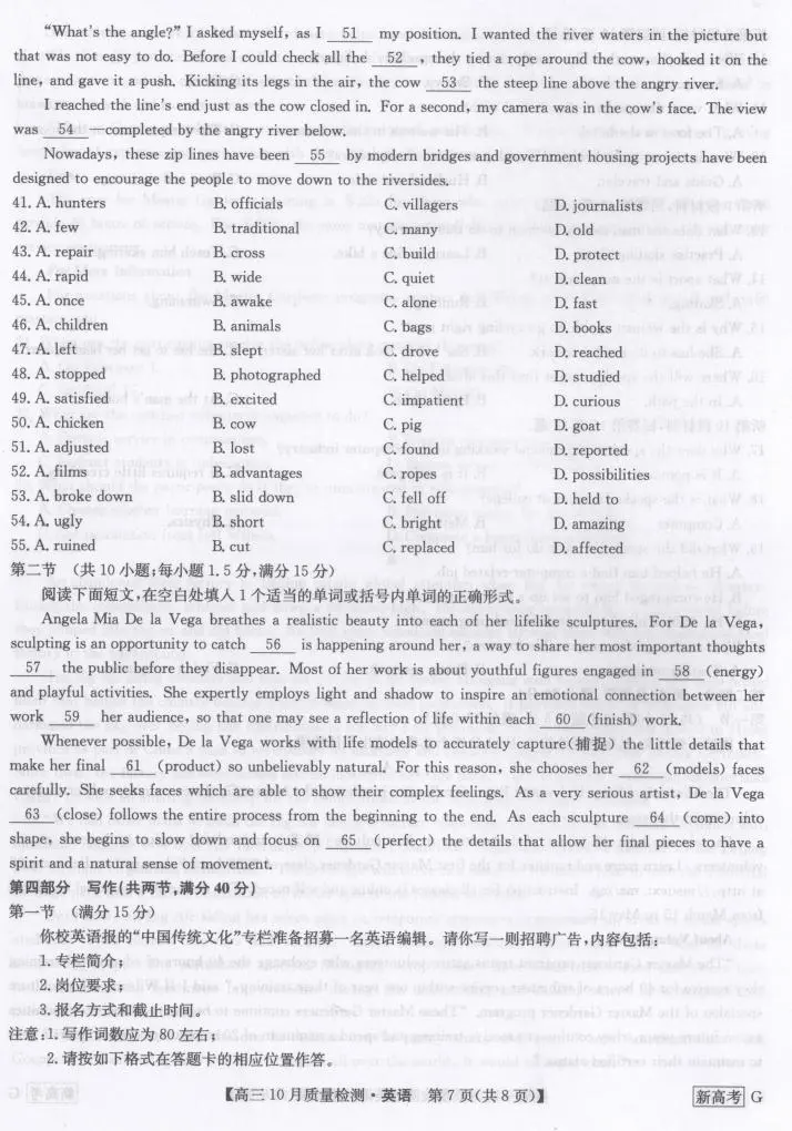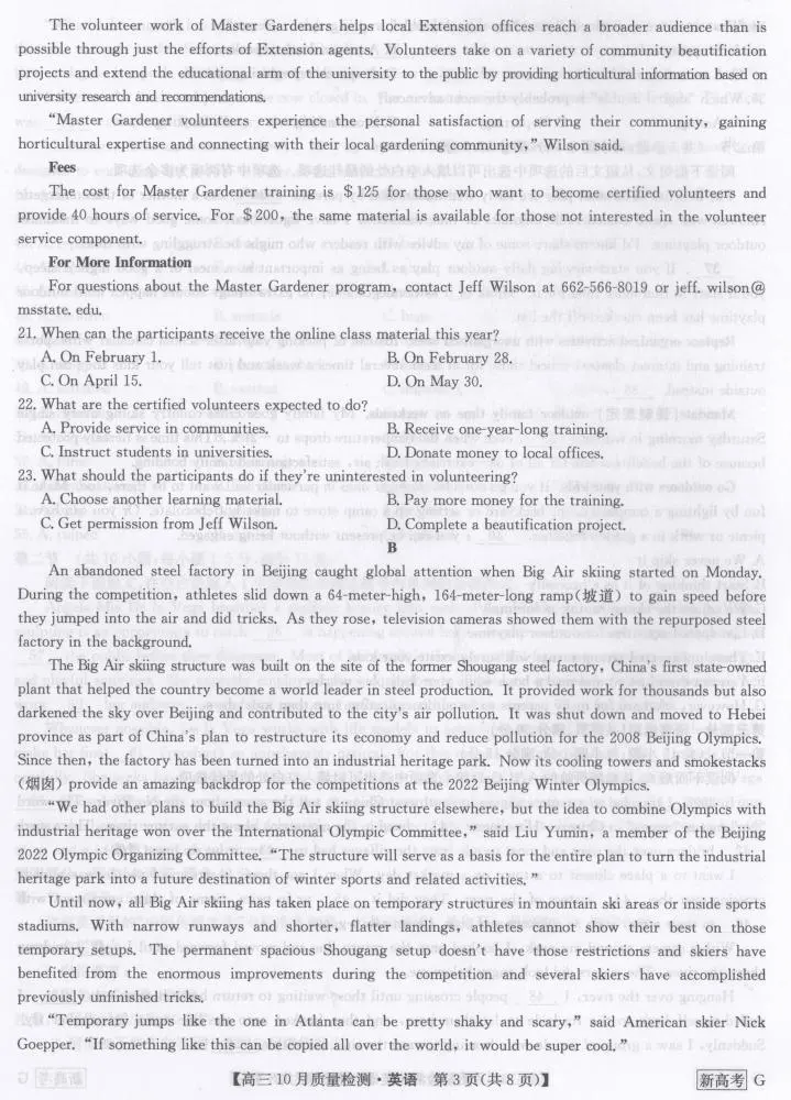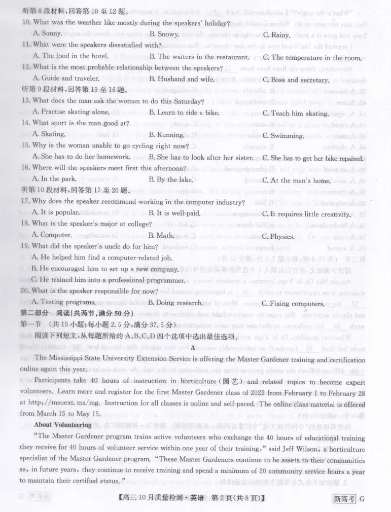 一、2023湖北九师联盟高三10月联考英语考试试题