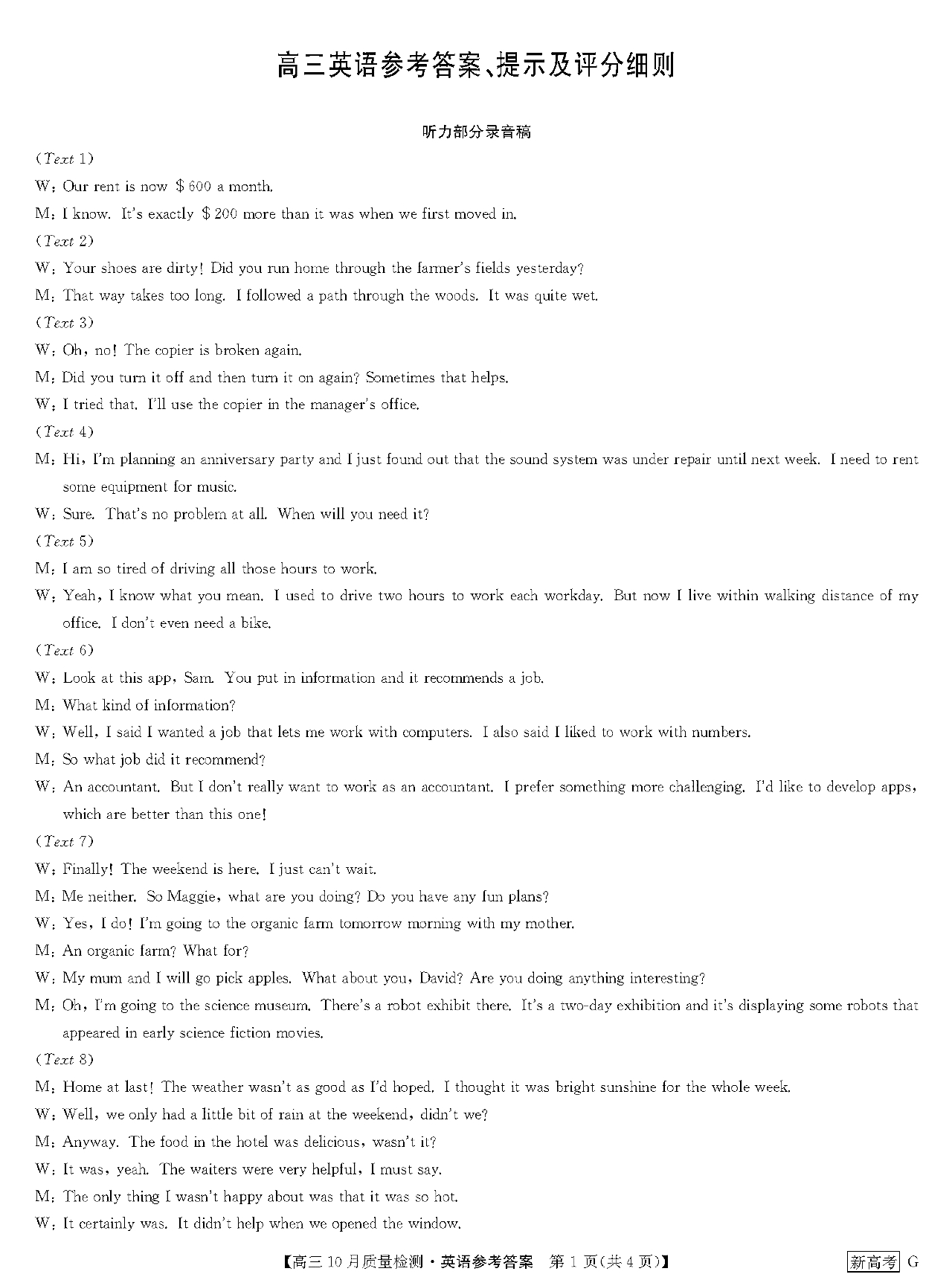 二、2023湖北九师联盟高三10月联考英语参考答案