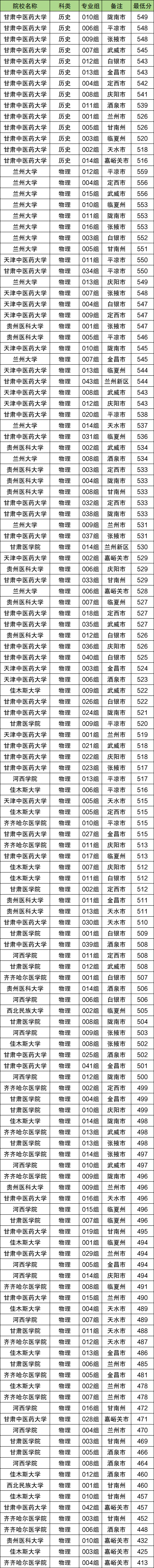 甘肃中医药大学:2025年公费医学生最低录取分数线为历史类516分、物理类457分。