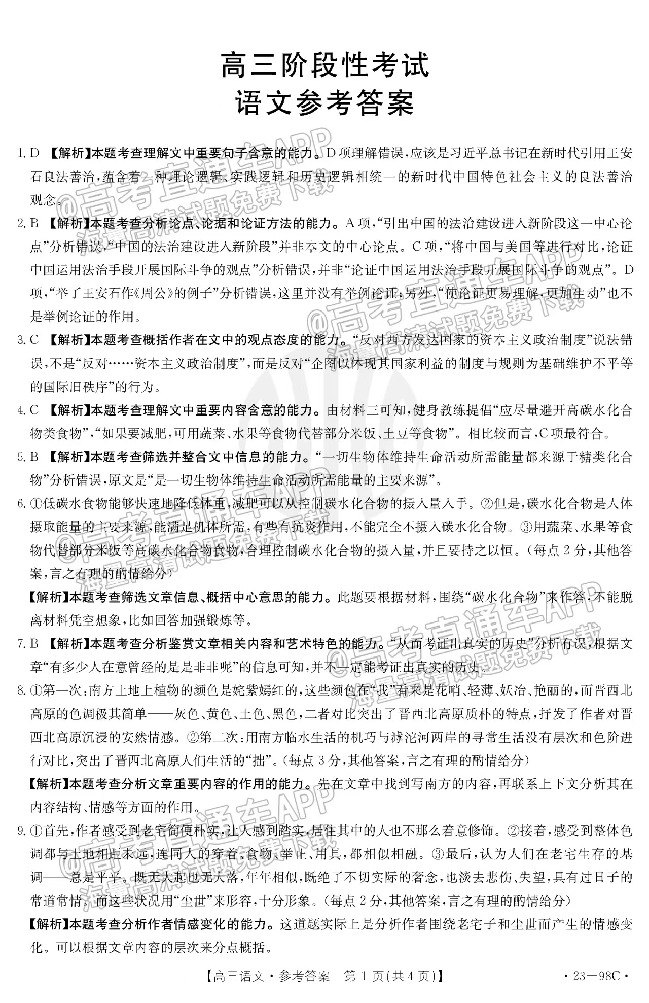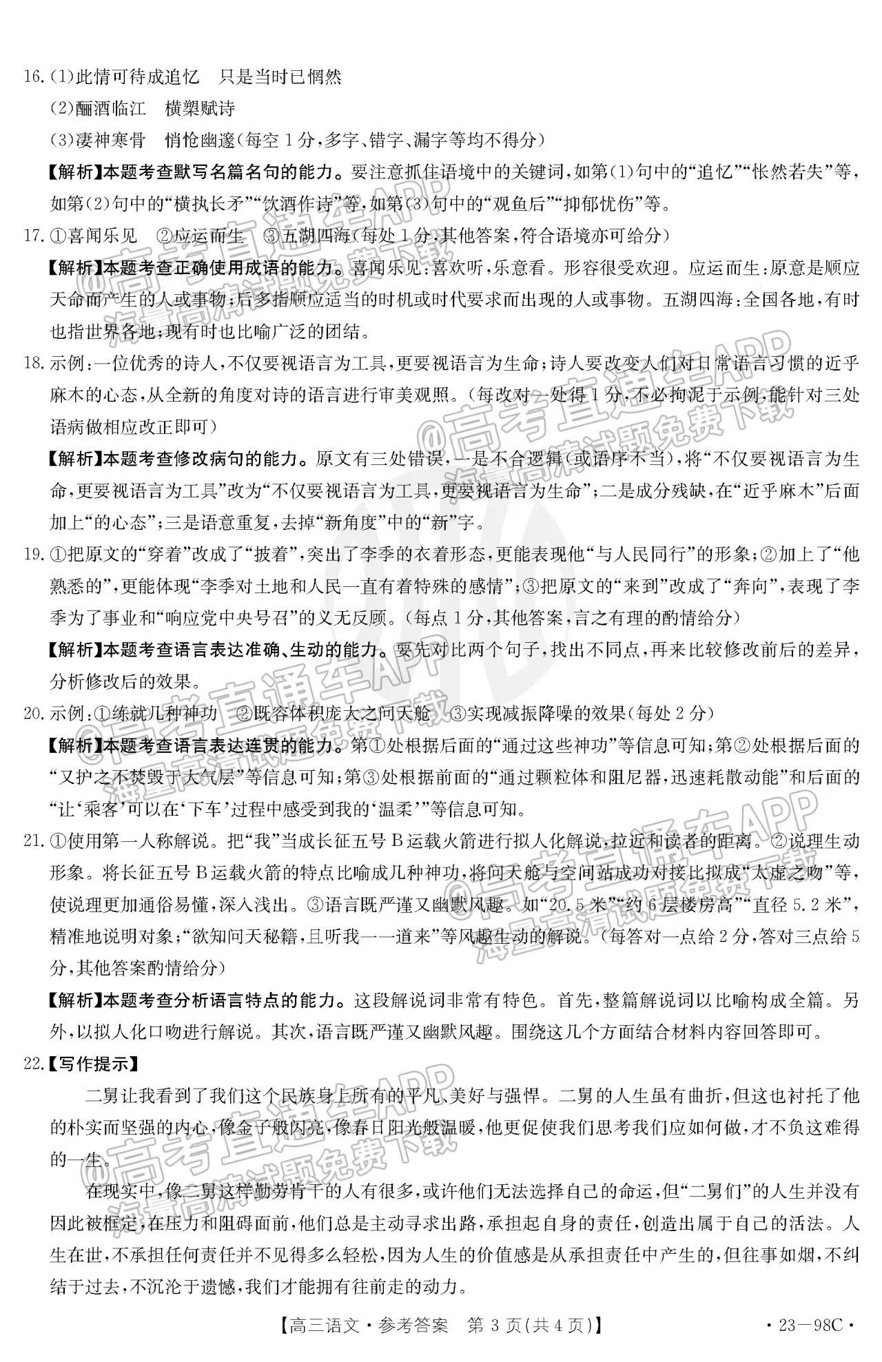 2023届江西高三10月大联考(二)于2022年10月27日开考,本文将在考后公布2023届江西高三10月大联考(二)语文科目试题及参考答案,供大家查阅。