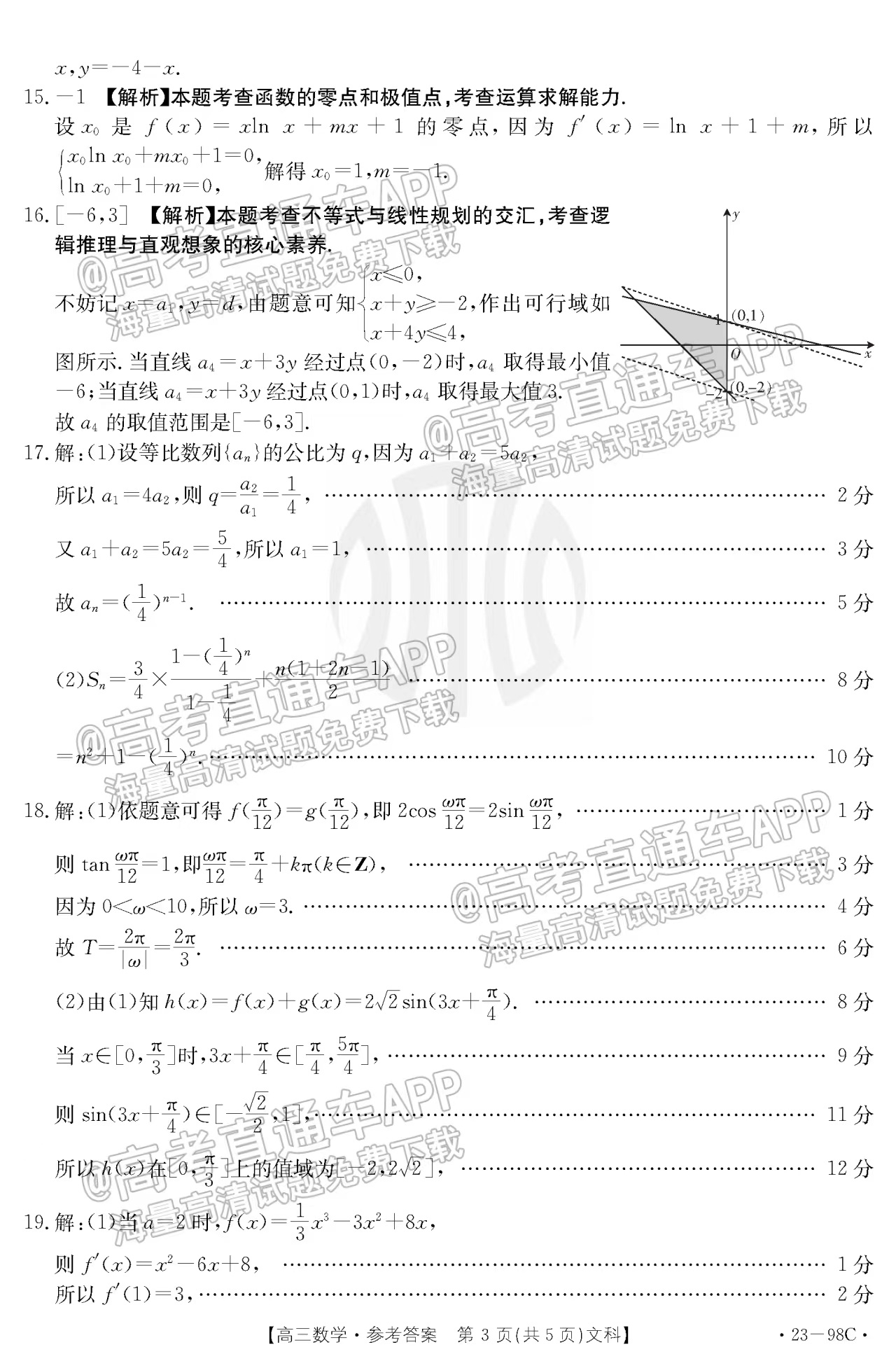 二、2023江西高三10月大联考(二)文数参考答案