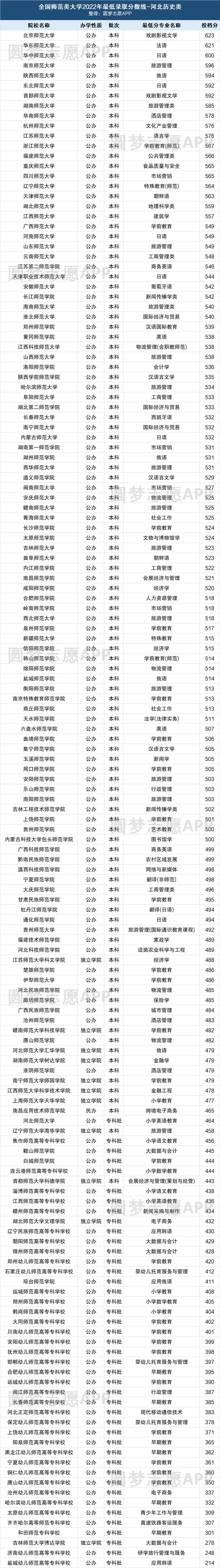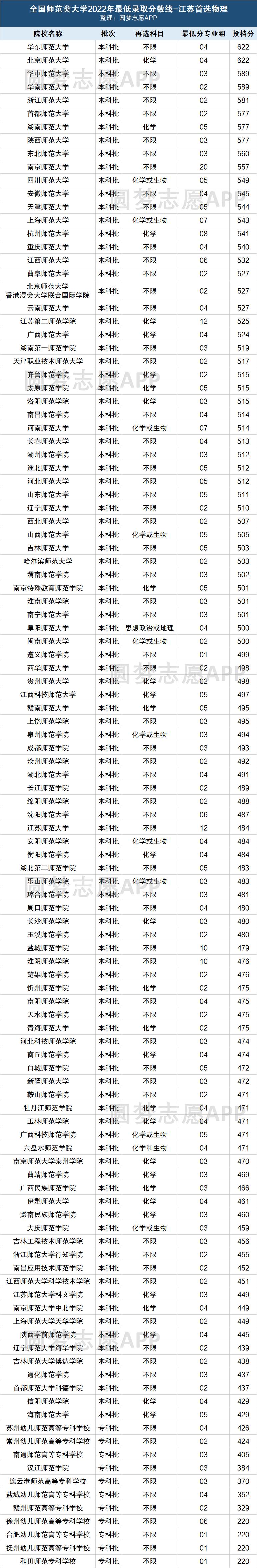 篇幅有限,本文以江苏、广东、河北等省份的分数线数据为例,为大家整理出2022年全国师范大学在各省的招生分数线情况。,其他省份的考生如果想查看师范类院校在本省的分数线的话,可以按照本文开头或结尾介绍的方法,进入圆梦志愿后自行查看!