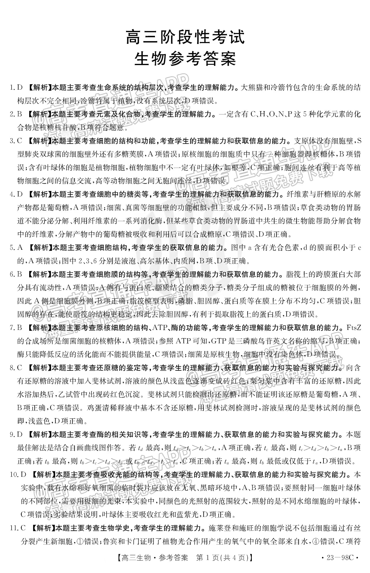 2023届江西高三10月大联考(二)于2022年10月27日开考,目前考试还未开始,本文将在考后公布2023届江西高三10月大联考(二)生物试题及参考答案,供大家查阅。