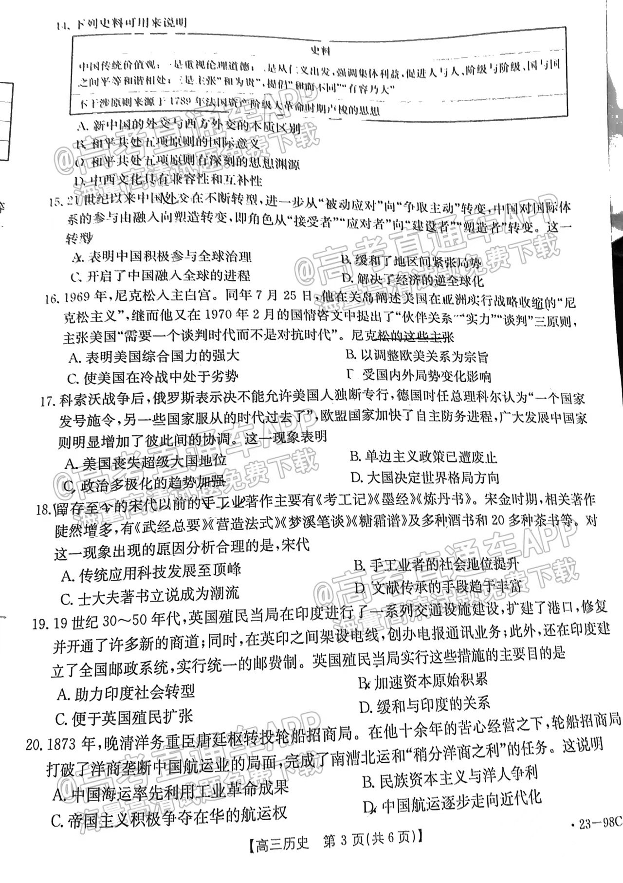 2023届江西高三10月大联考(二)于2022年10月27日开考,此次考试为金太阳试卷,本文将在考后公布2023届江西高三10月大联考(二)历史试题及参考答案,供大家查阅。