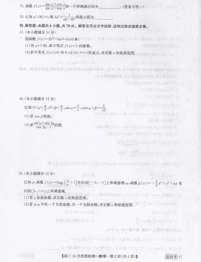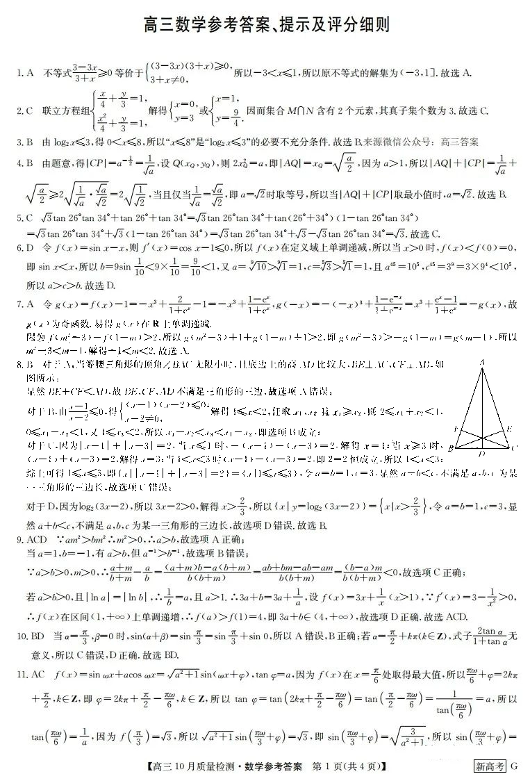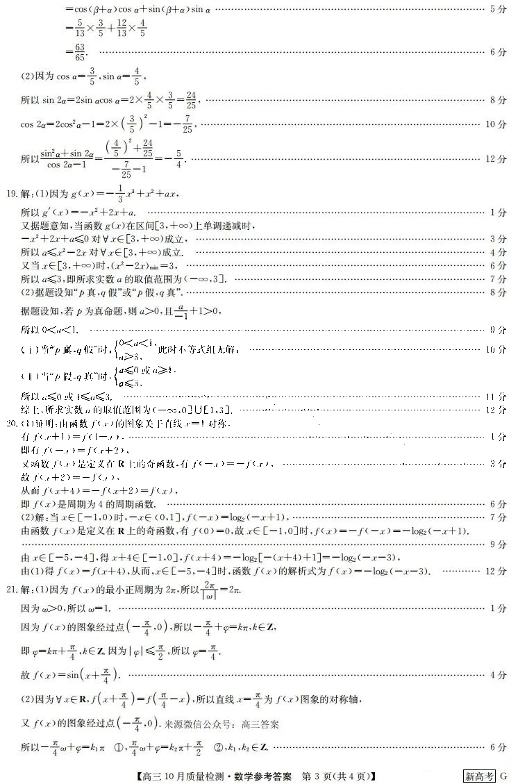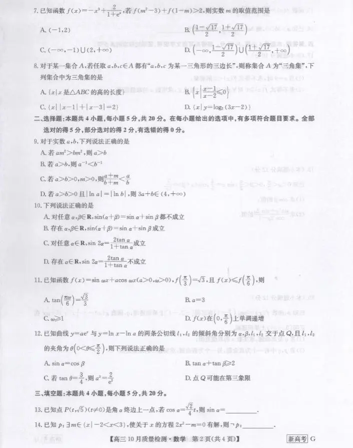 一、2023湖北九师联盟高三10月联考数学考试试题