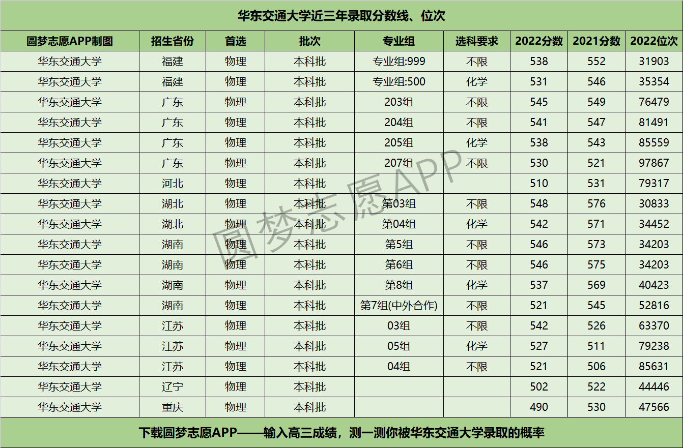 三、华东交通大学近年录取分数线及位次【首选物理版】