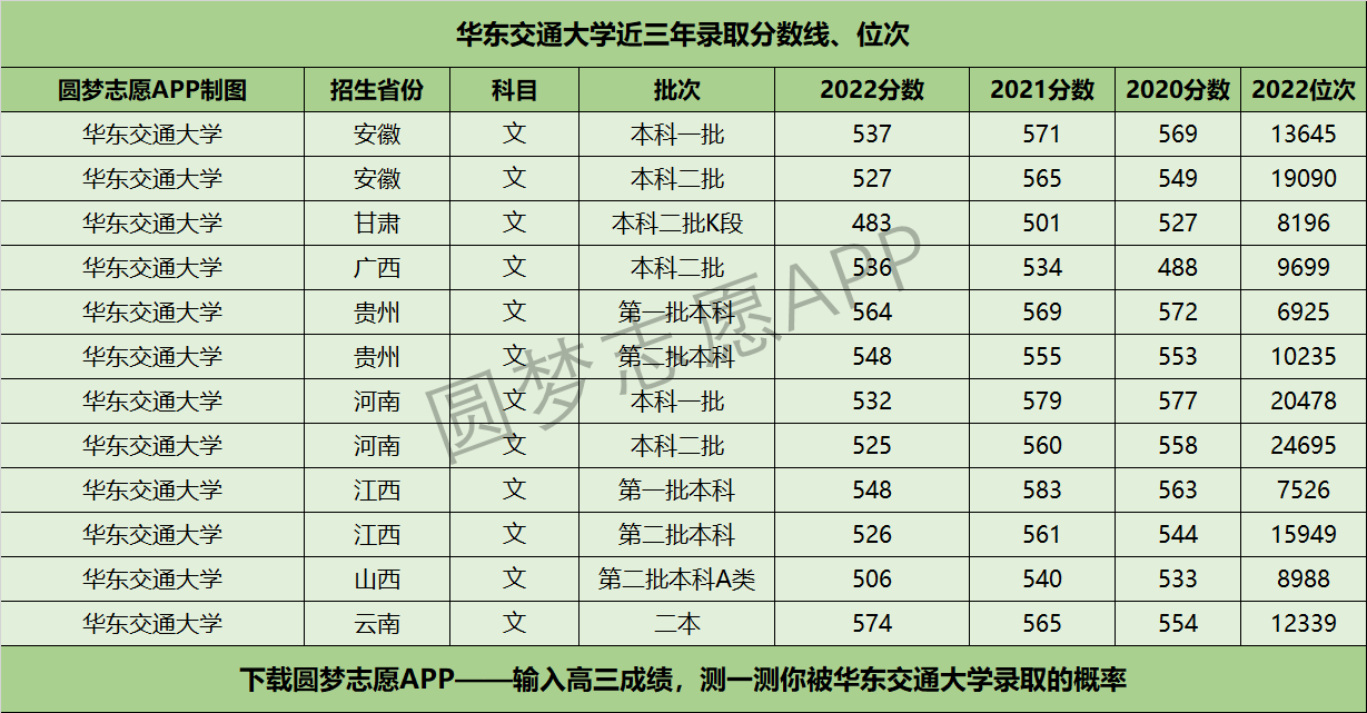 二、华东交通大学近三年录取分数线及位次【文科版】