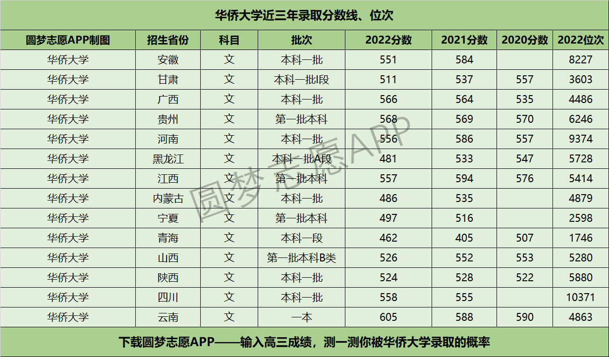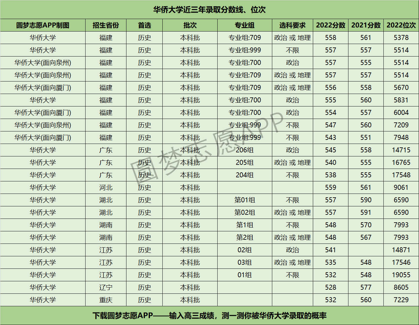四、华侨大学近年录取分数线及位次【首选历史版】