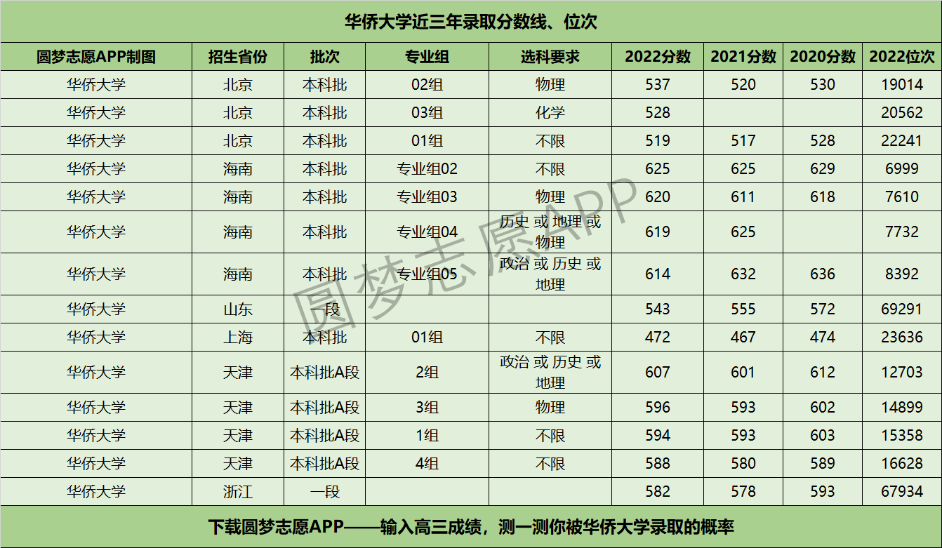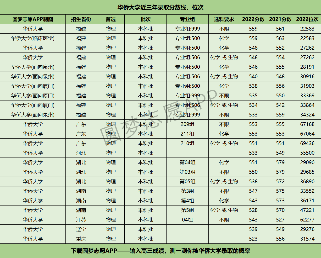 三、华侨大学近年录取分数线及位次【首选物理版】