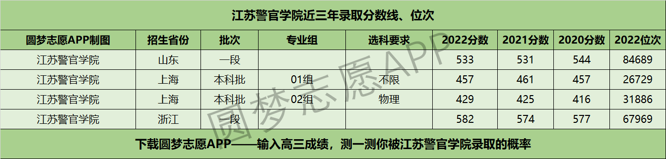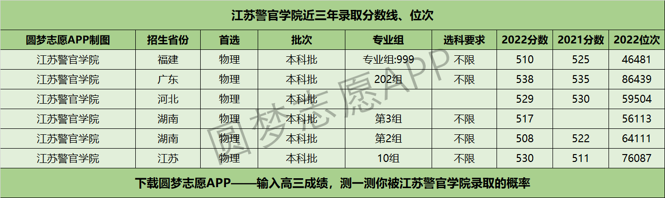三、江苏警官学院近年录取分数线及位次【首选物理版】