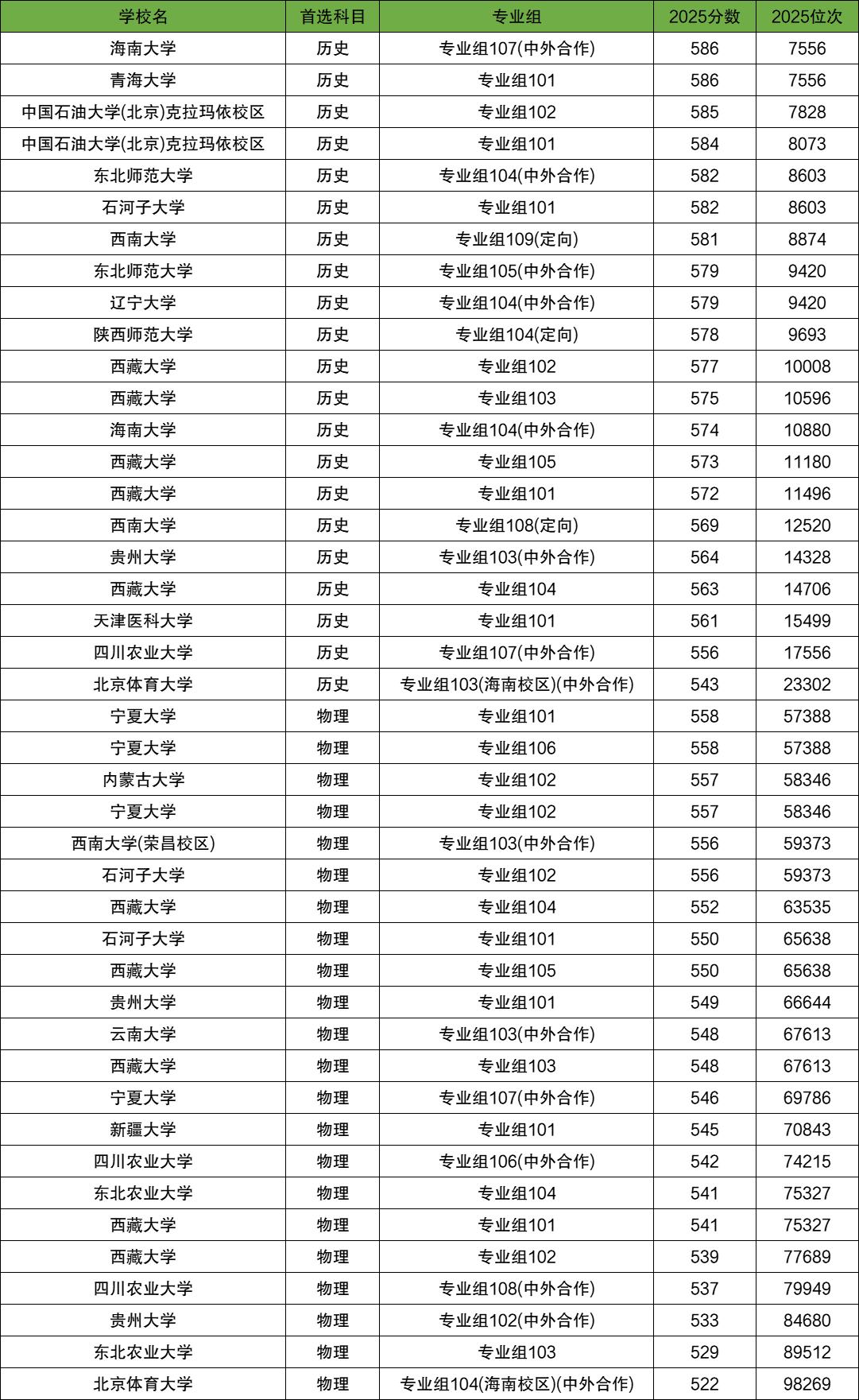 如果同学们不能被热门的211大学录取,选择青海大学、西藏大学等排名靠后的211大学也是不错的选择。下文为大家整理了2025年在四川历史、物理类录取分数线较低的211大学名单,包括西藏大学、青海大学、延边大学、新疆大学等211大学的录取分数线供大家参考: