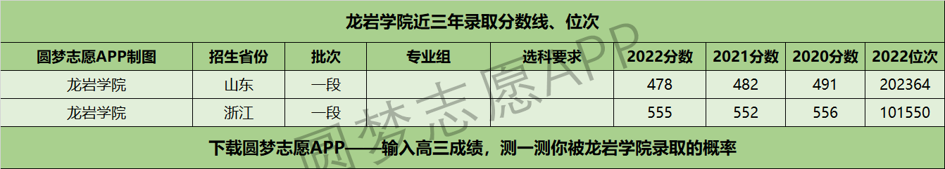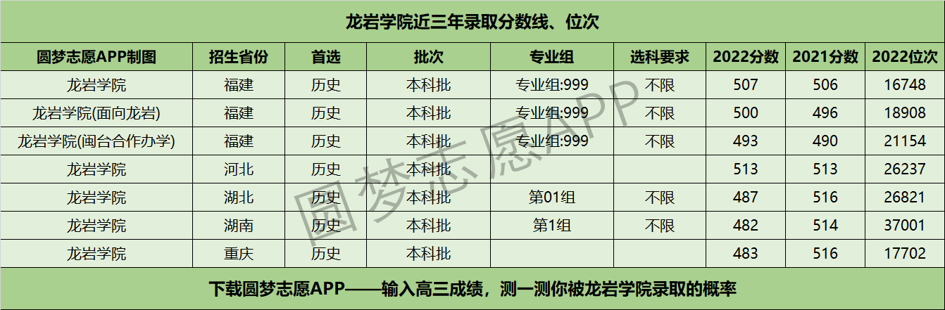 四、龙岩学院近年录取分数线及位次【首选历史版】