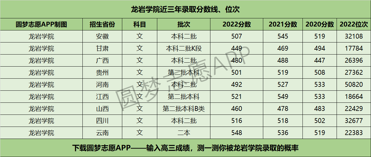 二、龙岩学院近三年录取分数线及位次【文科版】