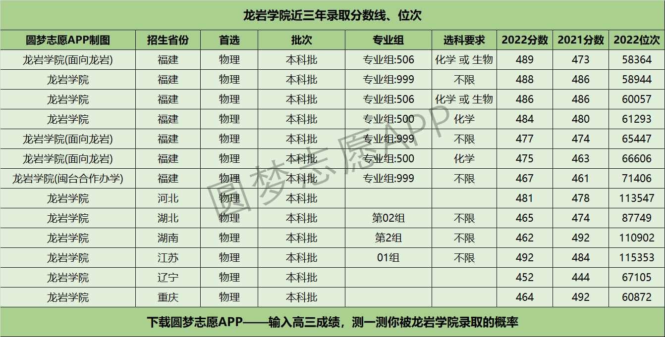 三、龙岩学院近年录取分数线及位次【首选物理版】