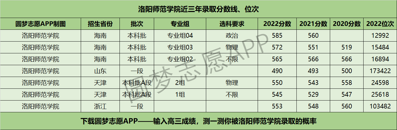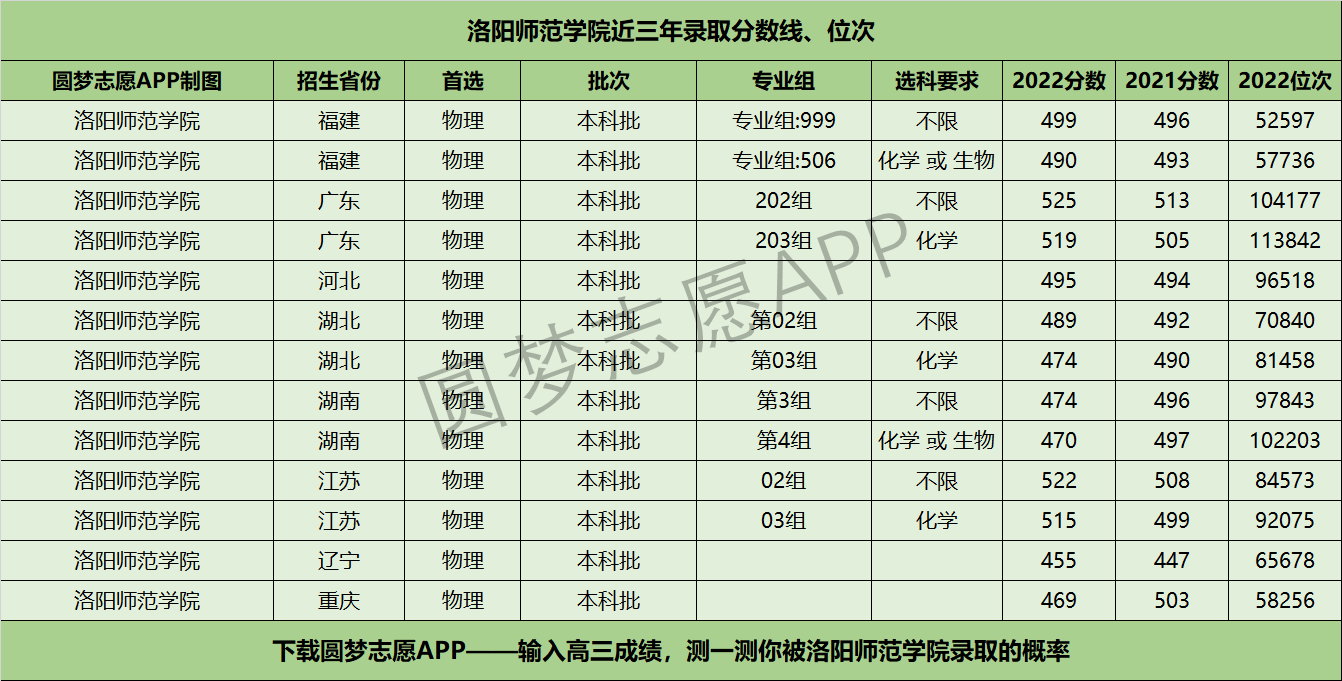 三、洛阳师范学院近年录取分数线及位次【首选物理版】