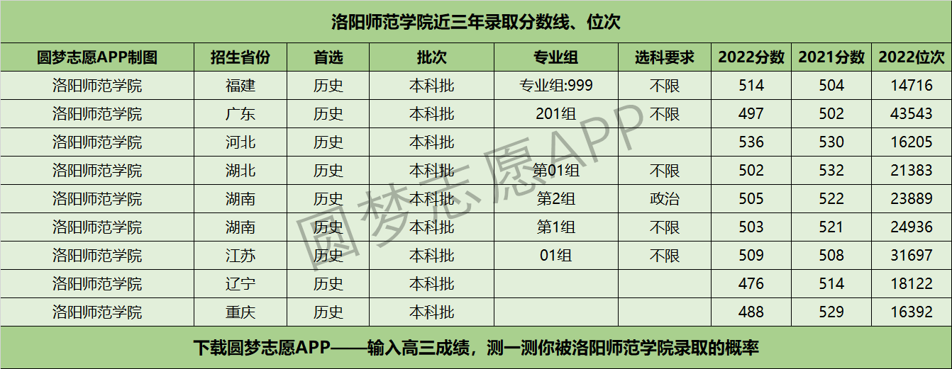 四、洛阳师范学院近年录取分数线及位次【首选历史版】