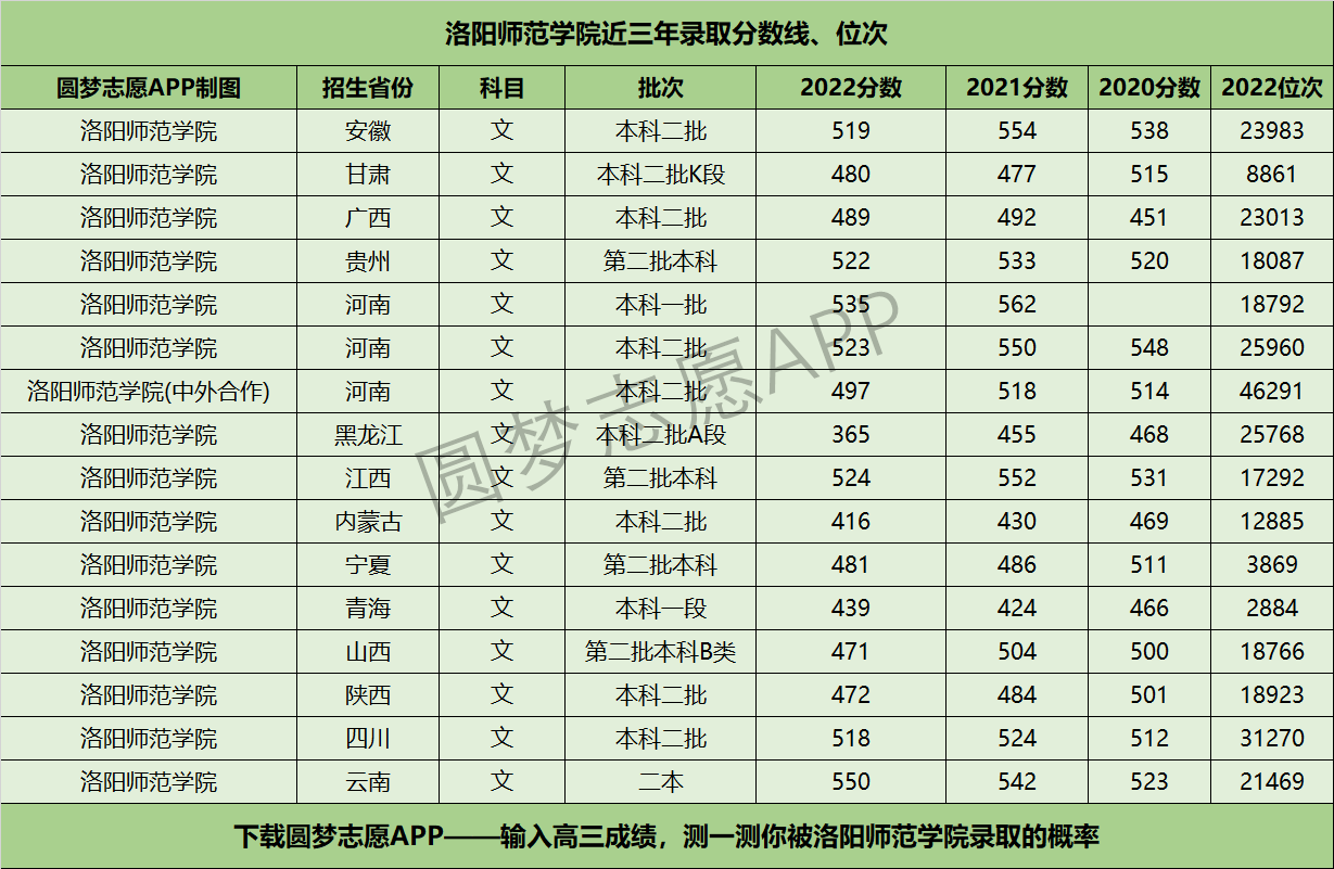 二、洛阳师范学院近三年录取分数线及位次【文科版】