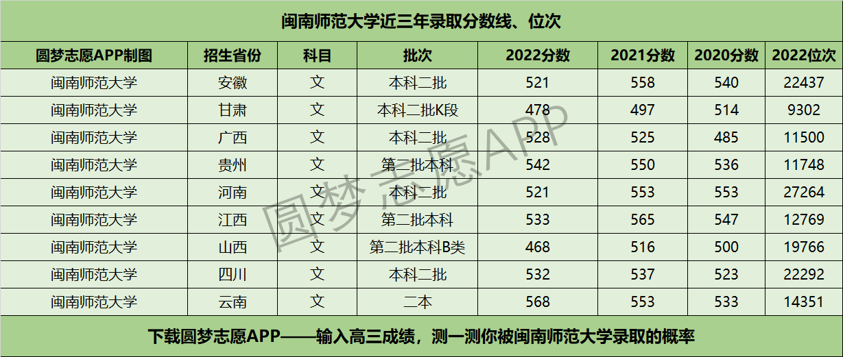 二、闽南师范大学近三年录取分数线及位次【文科版】