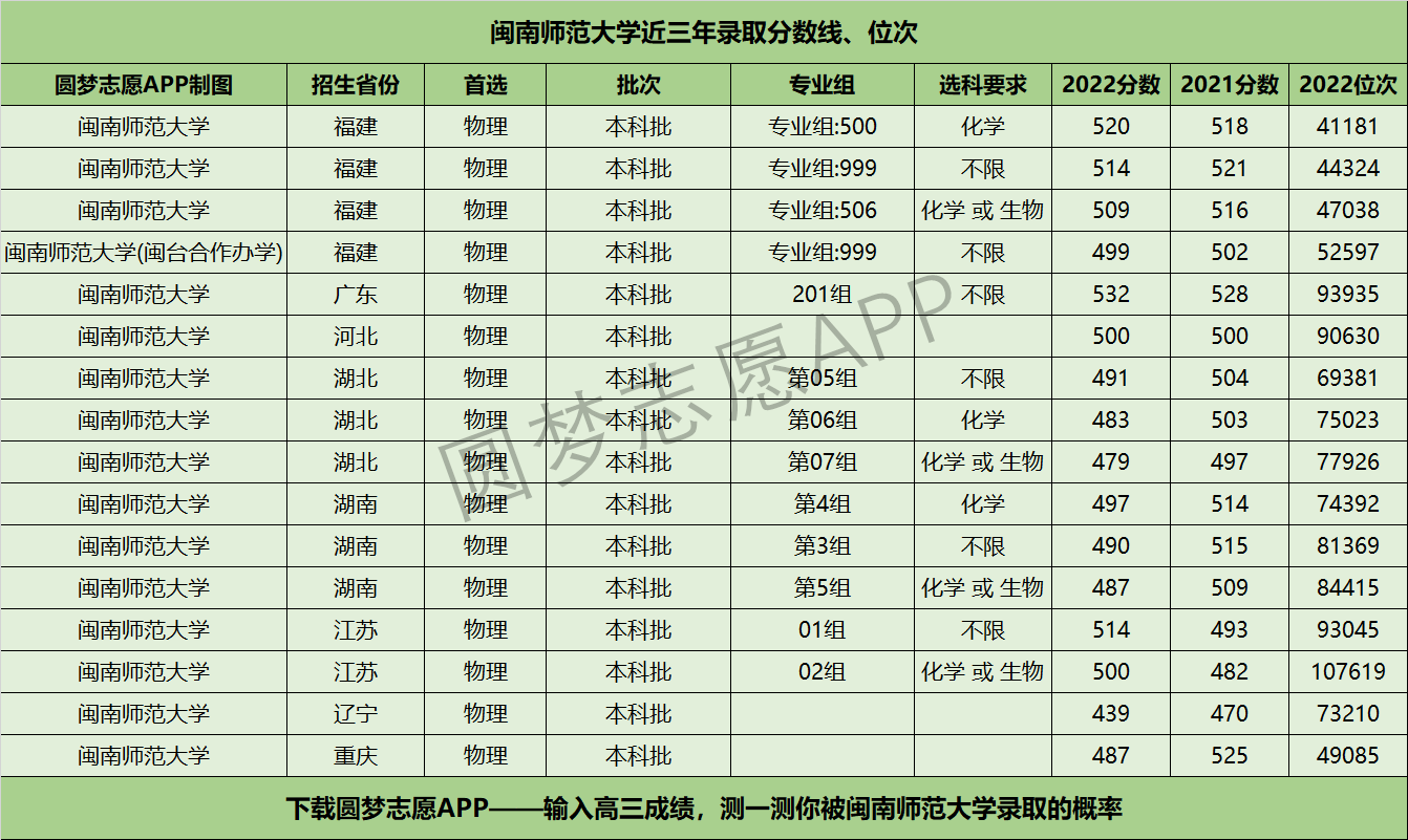 三、闽南师范大学近年录取分数线及位次【首选物理版】