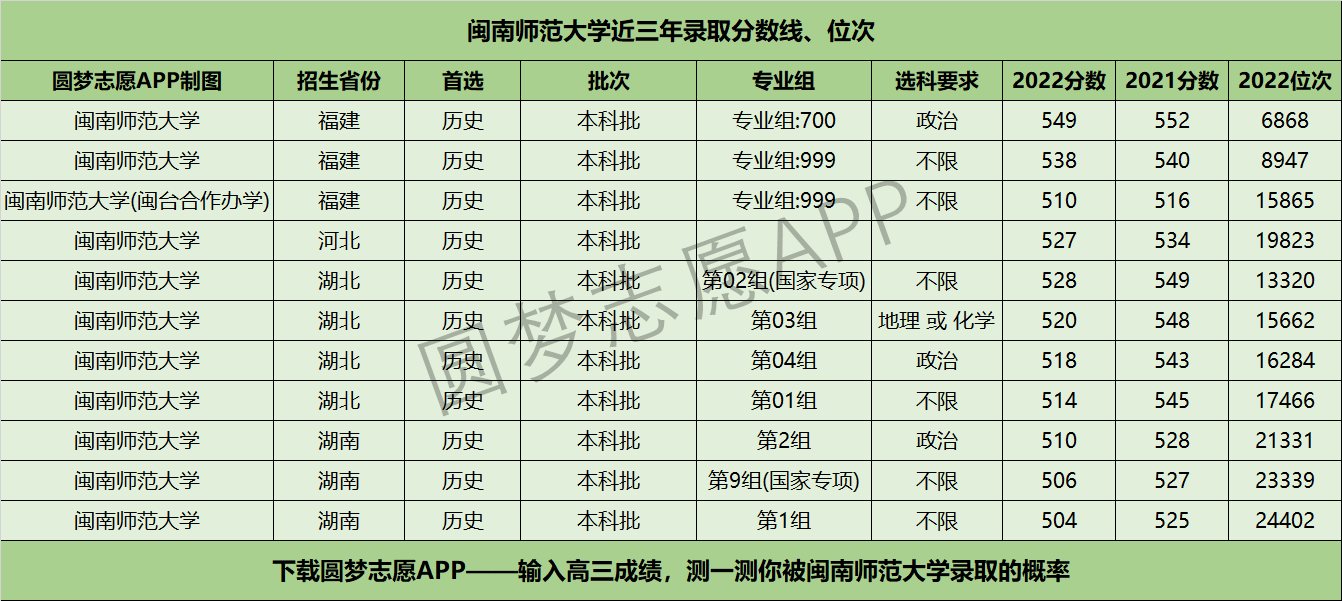 四、闽南师范大学近年录取分数线及位次【首选历史版】