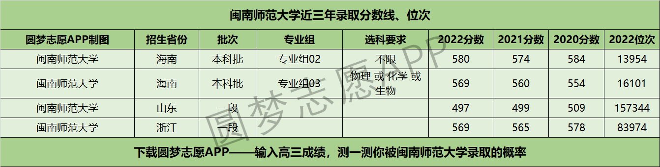 五、闽南师范大学近年录取分数线及位次【6选3省份】