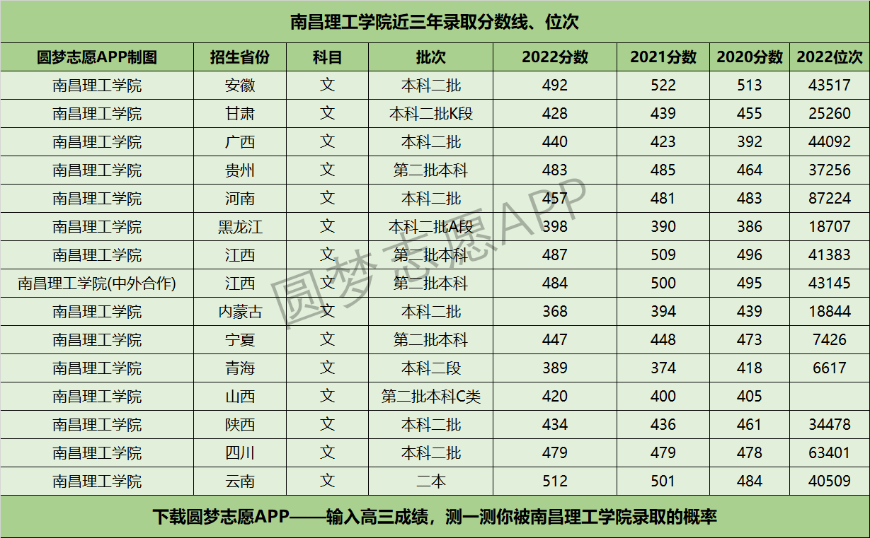 二、南昌理工学院近三年录取分数线及位次【文科版】