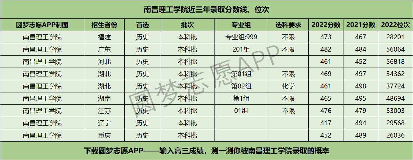 四、南昌理工学院近年录取分数线及位次【首选历史版】