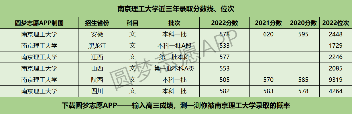 二、南京理工大学近三年录取分数线及位次【文科版】