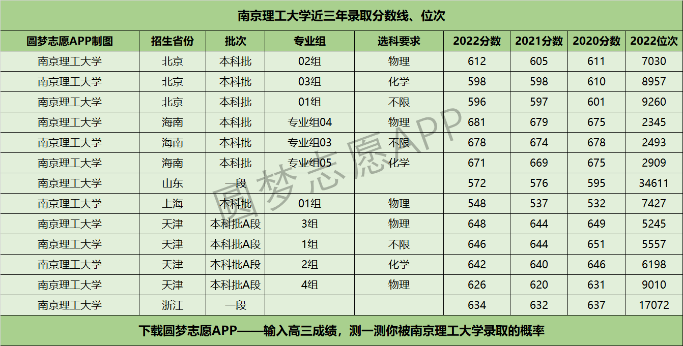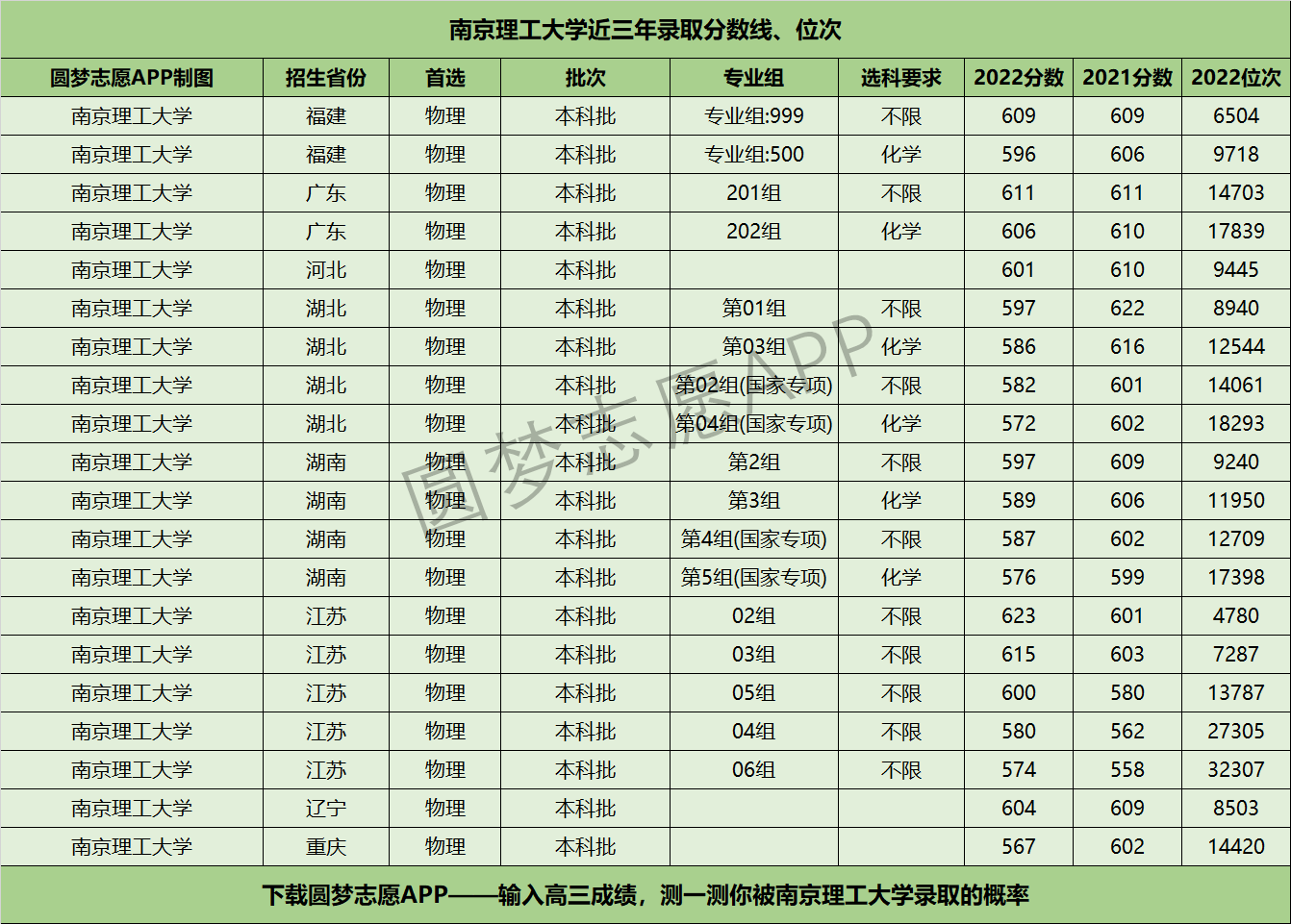 三、南京理工大学近年录取分数线及位次【首选物理版】