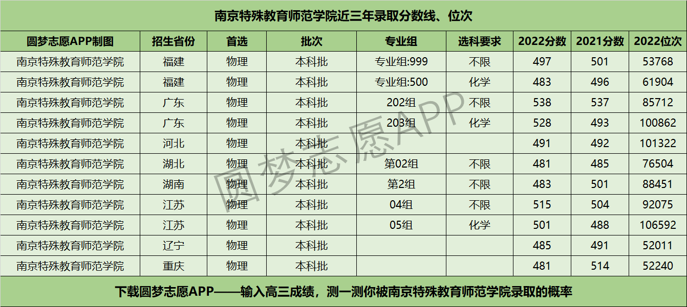 三、南京特殊教育师范学院近年录取分数线及位次【首选物理版】