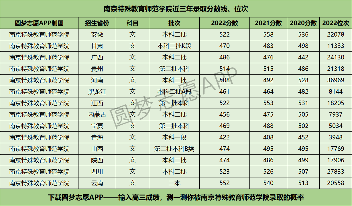 二、南京特殊教育师范学院近三年录取分数线及位次【文科版】