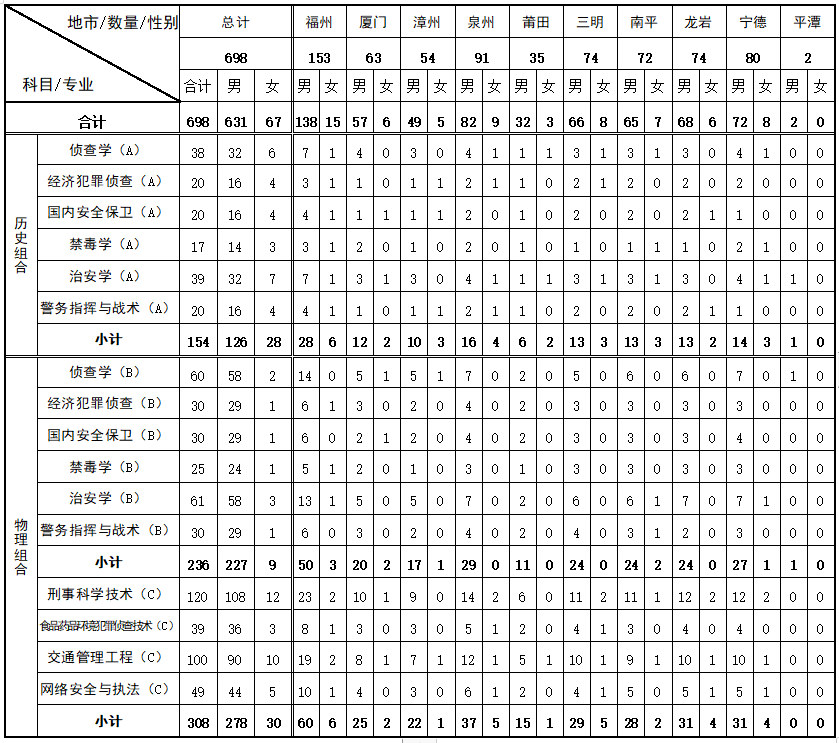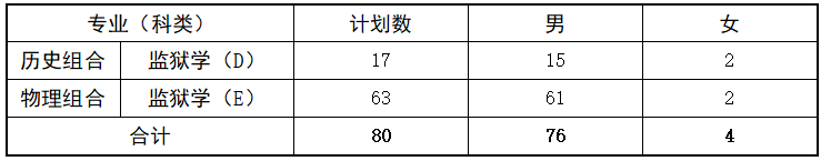 福建警察学院2025年招生计划表: