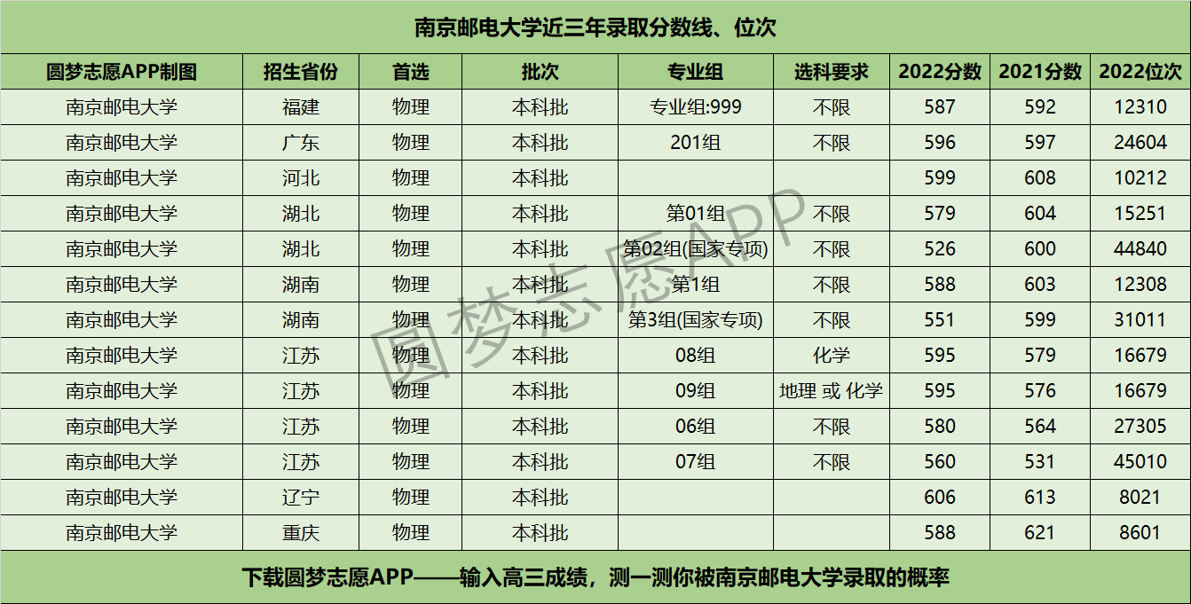 三、南京邮电大学通达学院近年录取分数线及位次【首选物理版】