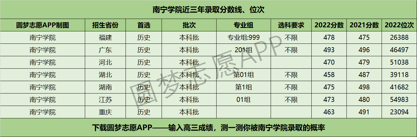 四、南宁学院近年录取分数线及位次【首选历史版】