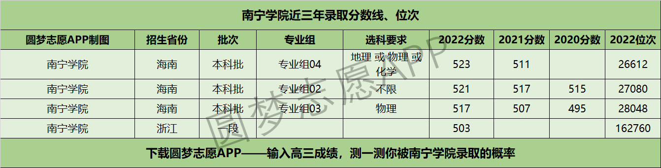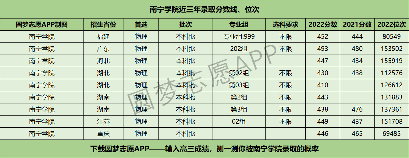 三、南宁学院近年录取分数线及位次【首选物理版】