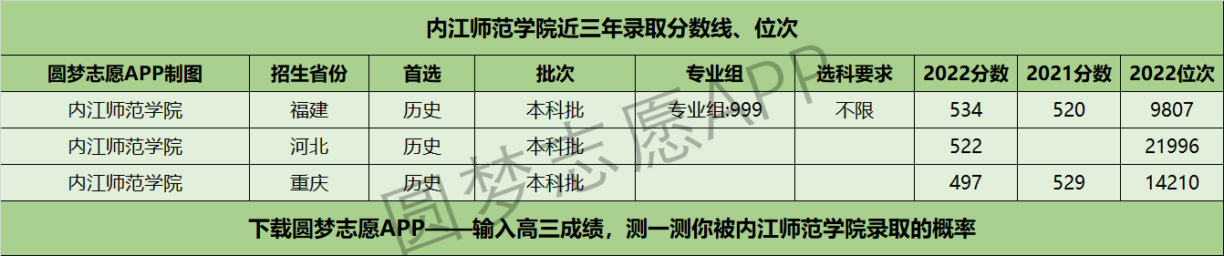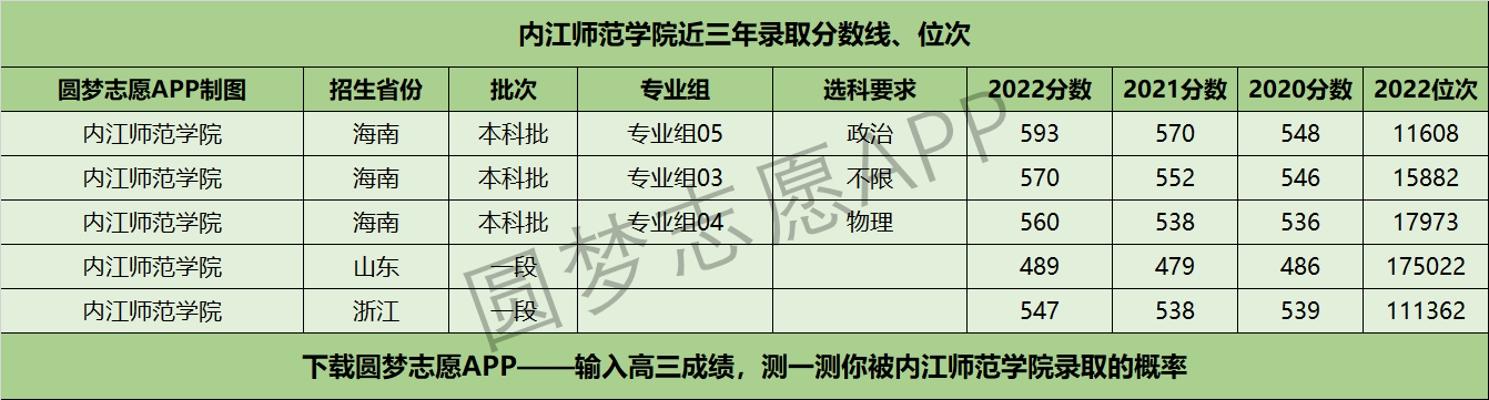 五、内江师范学院近年录取分数线及位次【6选3省份】