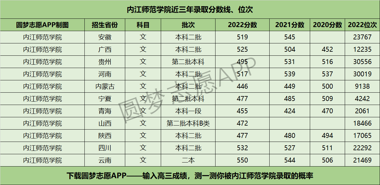 二、内江师范学院近三年录取分数线及位次【文科版】