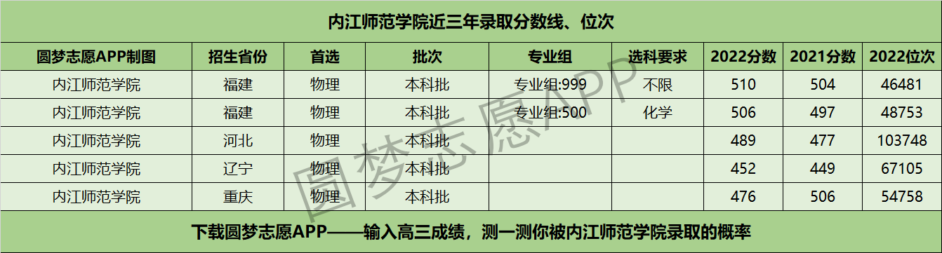 三、内江师范学院近年录取分数线及位次【首选物理版】