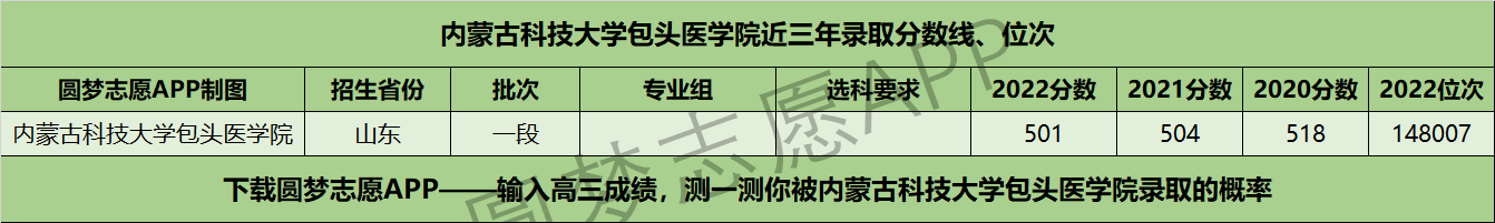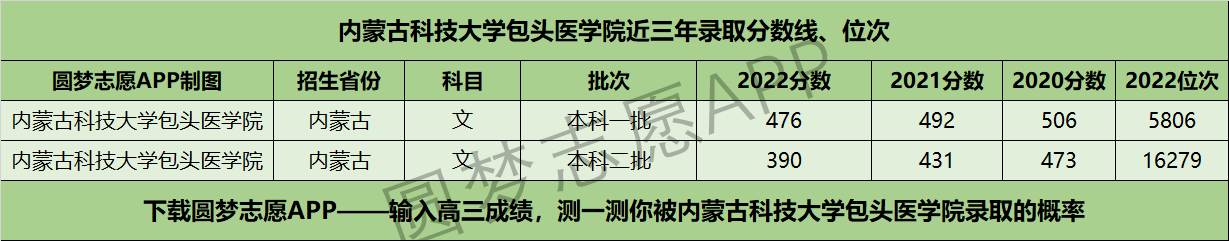 四、内蒙古科技大学包头医学院近年录取分数线及位次【6选3省份】