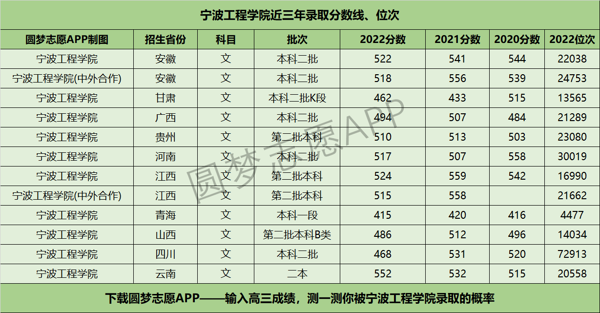 二、宁波工程学院近三年录取分数线及位次【文科版】