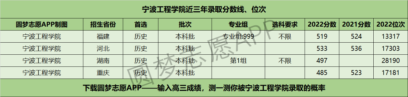 四、宁波工程学院近年录取分数线及位次【首选历史版】
