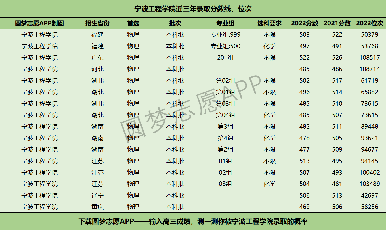 三、宁波工程学院近年录取分数线及位次【首选物理版】
